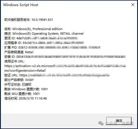 slmgr /dli2.查看Windows详细激活信息